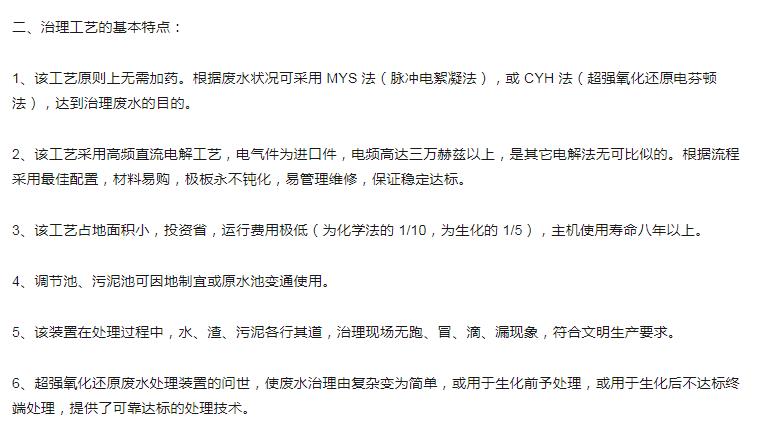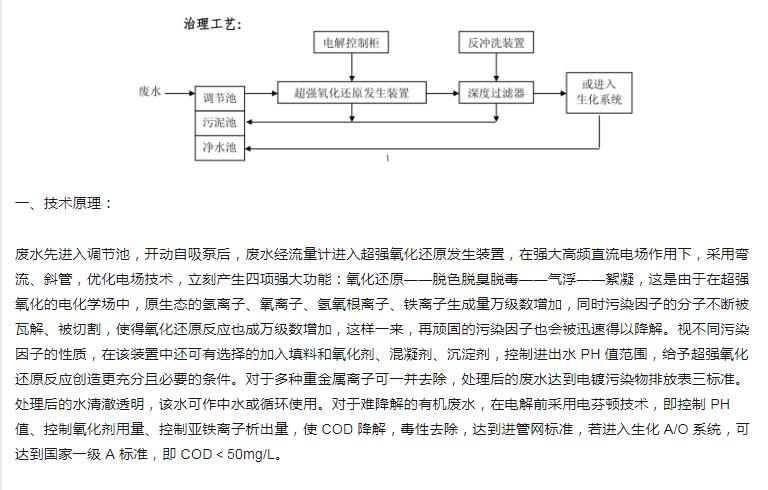 超强氧化还原废水处理装置(CYH法)处理各种有机废水、各种重金属废水