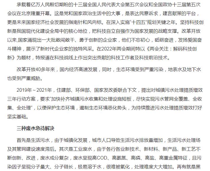 今日头条刊登:喜迎二十大|超强氧化还原(CYH法)技术,使污水处理再无后顾之忧