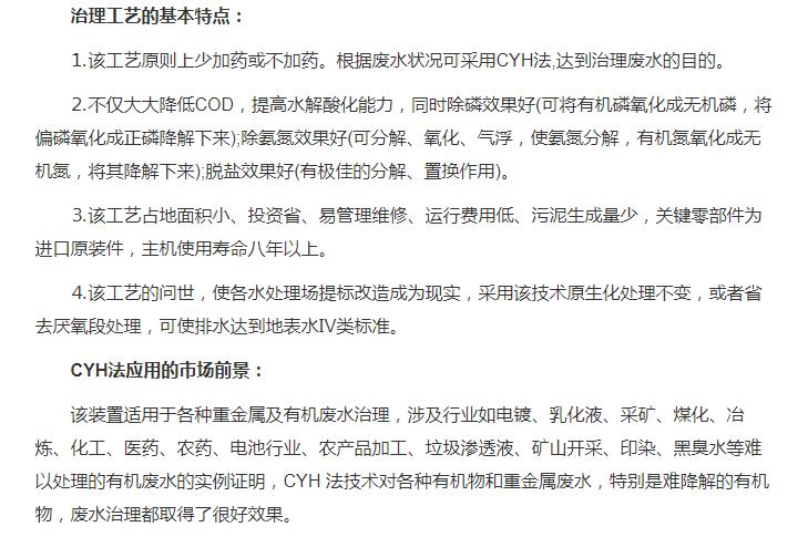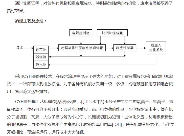 超强氧化还原废水处理装置(CYH法)处理各种有机废水、各种重金属废水