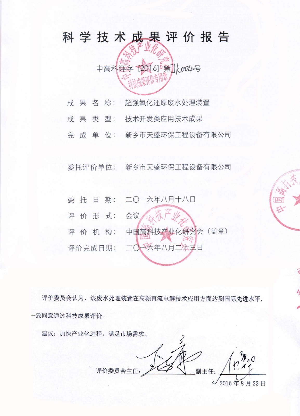 中国高新技术网发布:《关注:解码科技创新》——新乡市天盛环保“超强氧化还原废水处理技术”